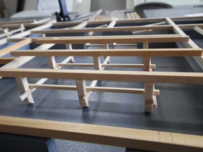 梁と貫は組み立ててから塗装をするので、しばらく室内で寝かせます。