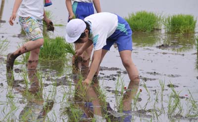 そう田植えです。自宅でも手伝っている末娘は2年生ながら他の子達よりも手慣れた様子でサクサク植えてました。
