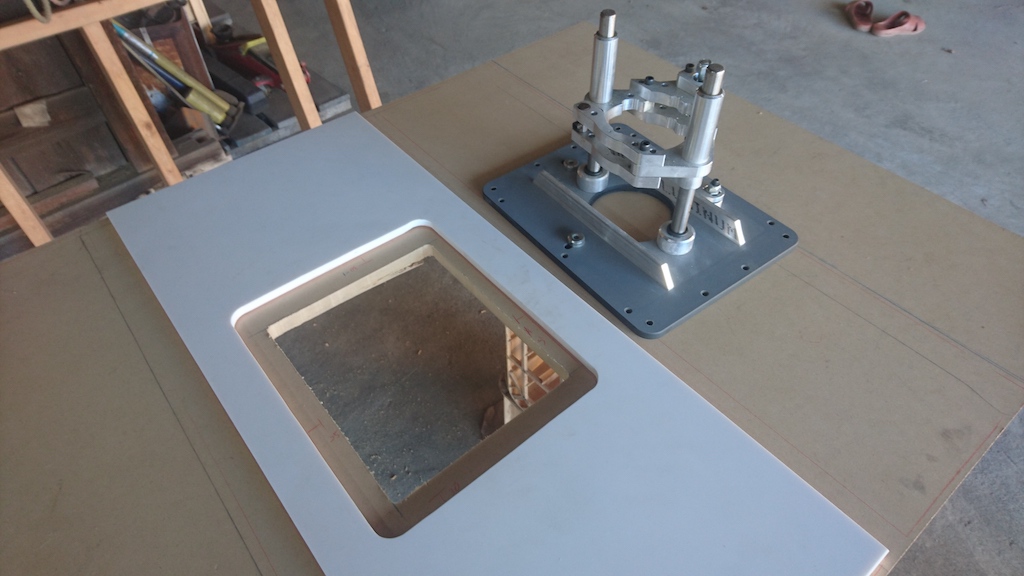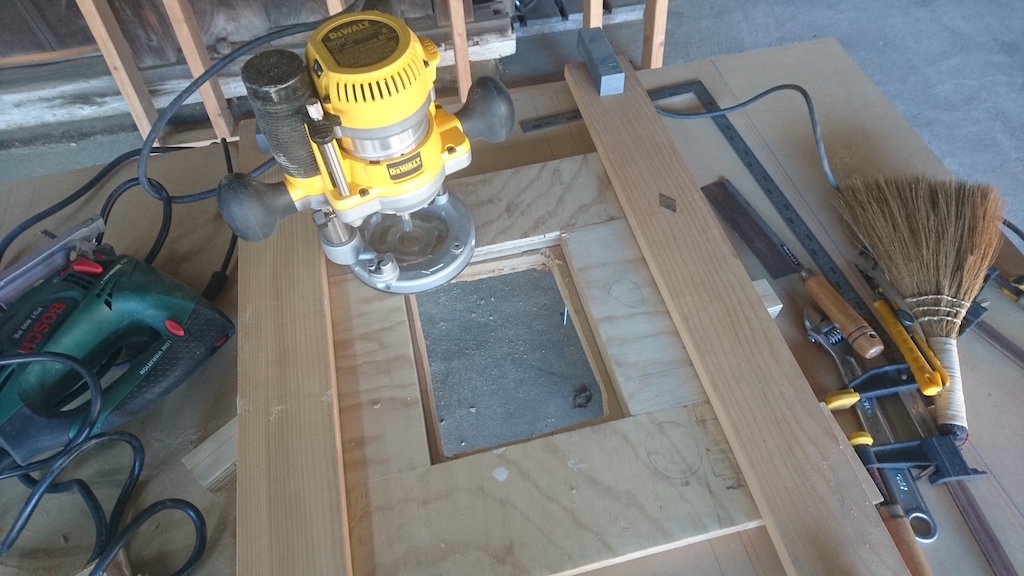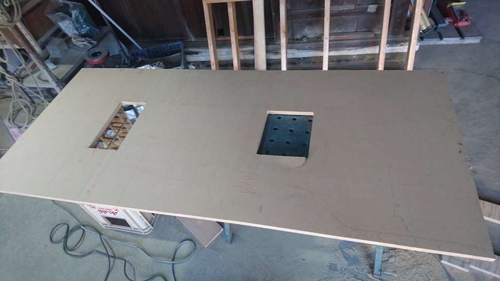 丸ノコとルーターリフターそれぞれが収まる穴が空きました。