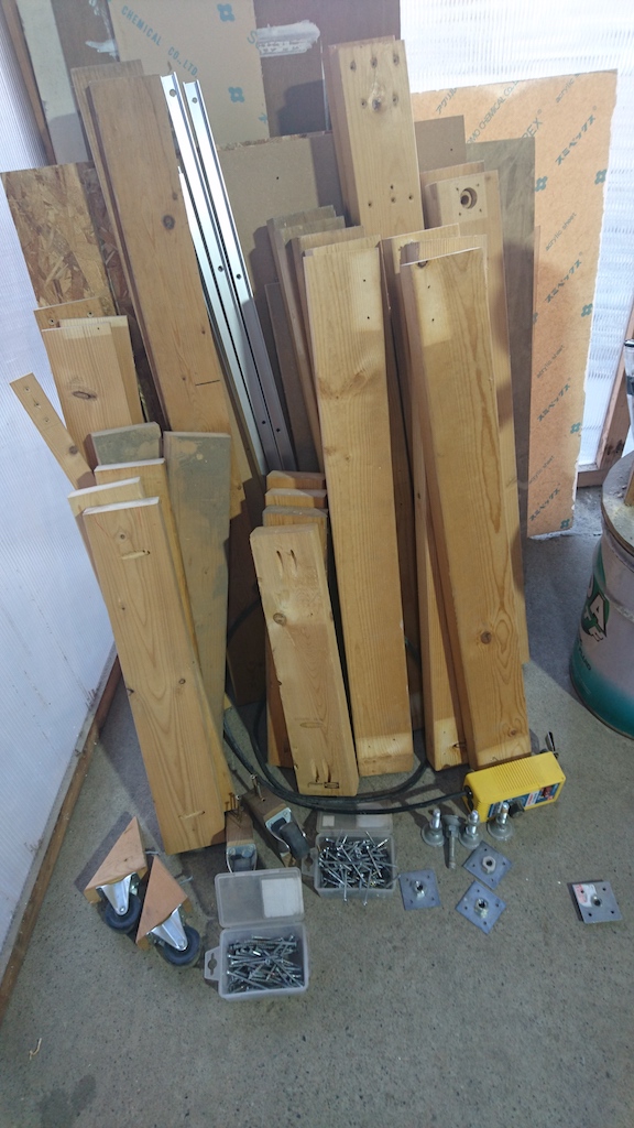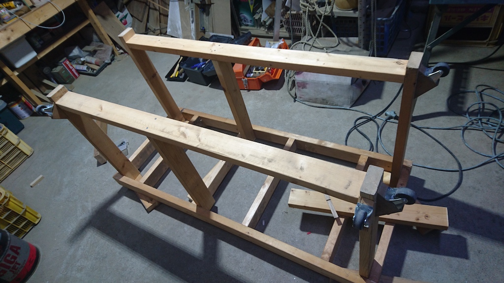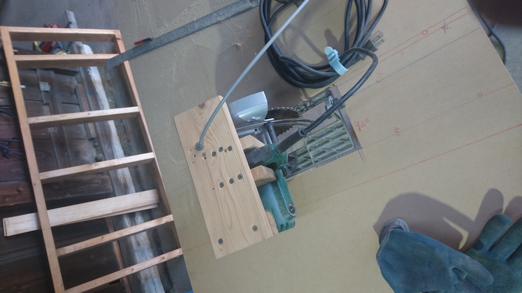 この後丸ノコを吊るすための仕掛け造りをしていたところで