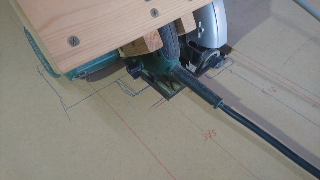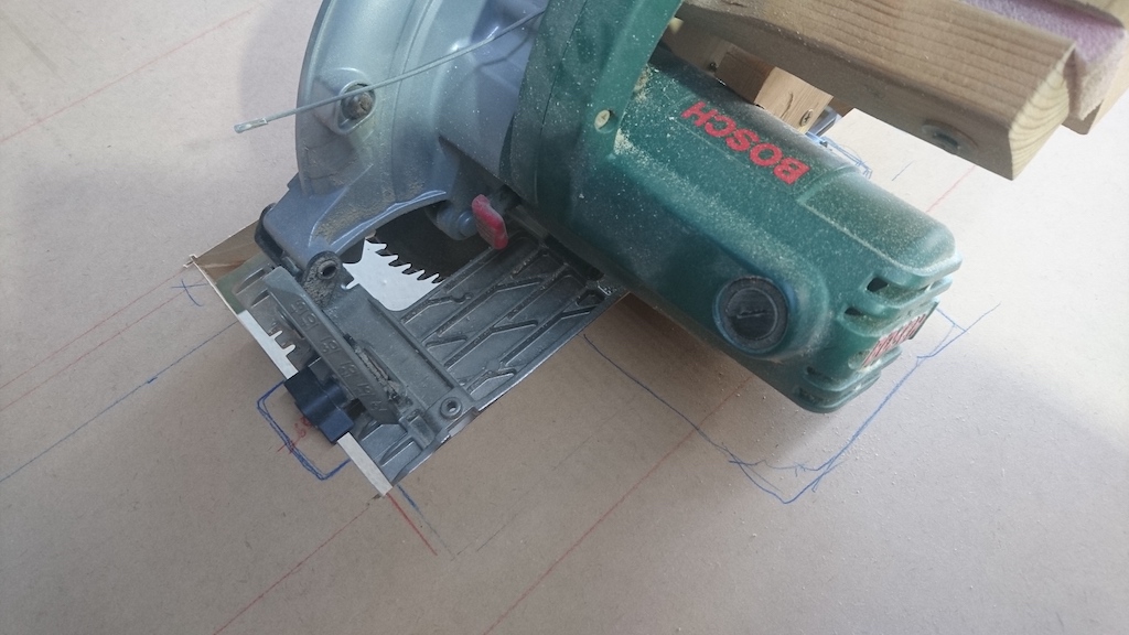 続いて丸ノコのベース合わせて底板をくりぬきます。