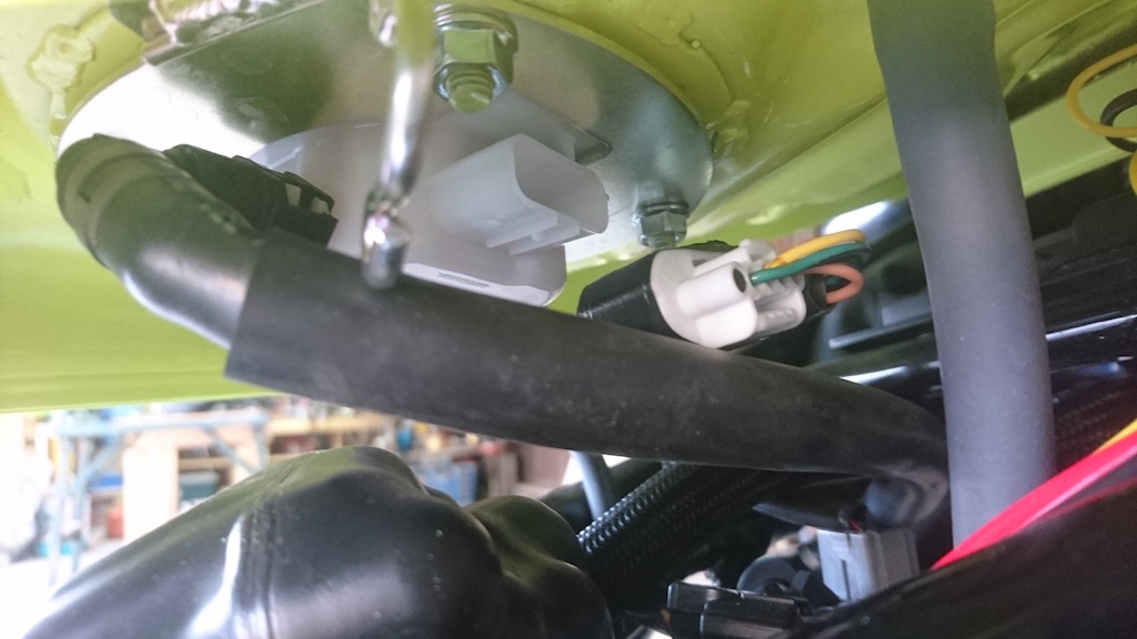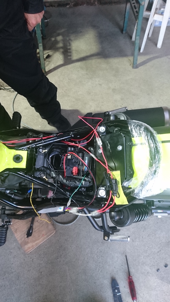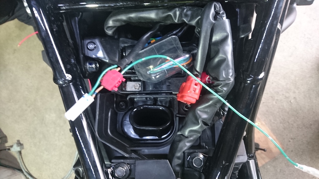 壊れたか? ヒューズか? 色々な事が頭をよぎります。 途中で見える部分の配線も確認しましたが問題無し。 帰宅してからシートを外して(買って2週間で何度外した事かw)ヒューズやらタンクも持ち上げて途中配線を確認(タンク外しの実験でやらかしたかと)しても特に以上なし...で、ふとシート下の丸まった配線を見るとギボシが一個外れてますw きちんと接続してスイッチを入れると無事に即座に暖かくなりました(汗・汗・汗 一番単純なしかもパッと見て分かるところじゃん(ノ´∀`)ノ♪