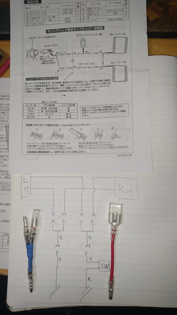 デイトナのHOT GRIP 巻きタイプEASYがあまり効果を確認できない状態の為、装着時から違和感があった直列接続を並列接続にしてしまおうかと。