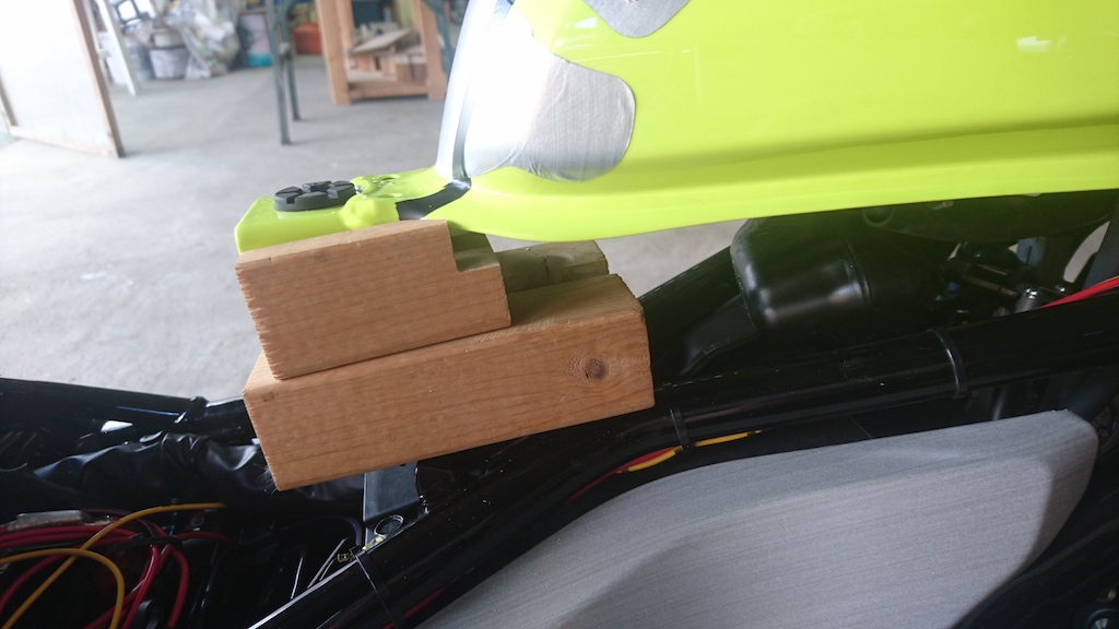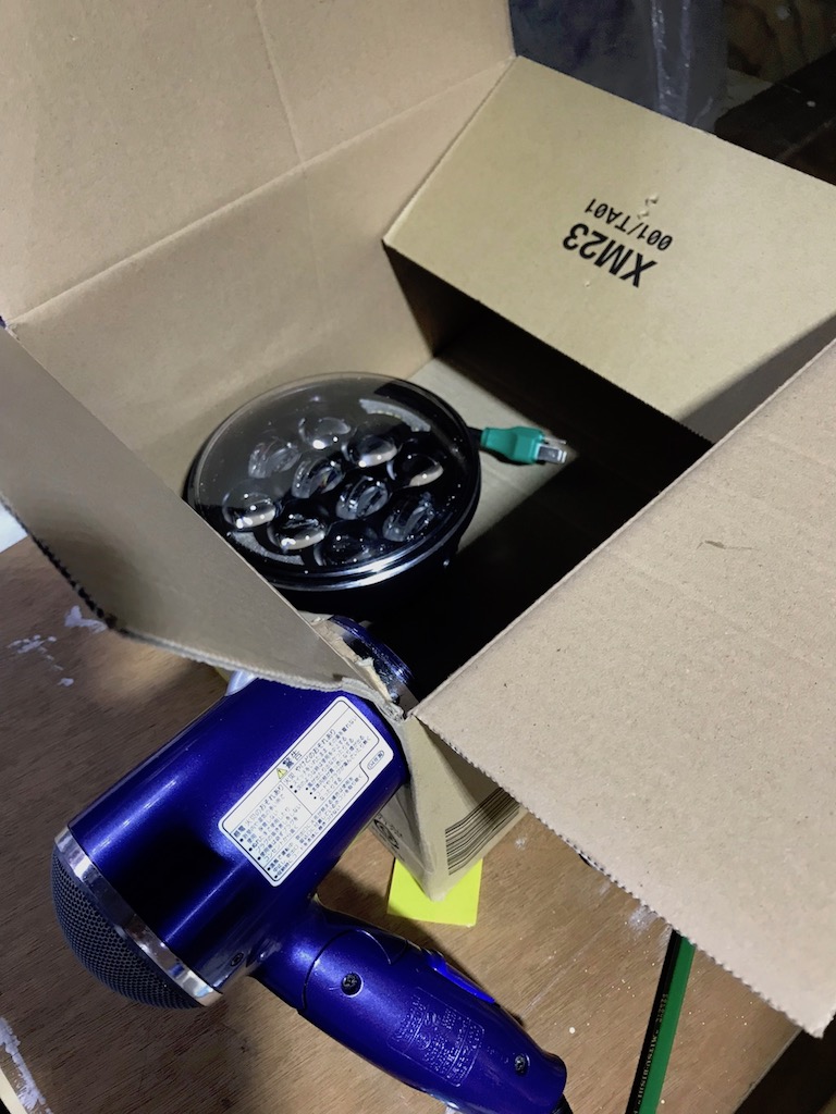 光軸調整ユニットを思い切って取り外し、ベースのフレームにはめ込んでみました。あつらえたかのようにピッタリなのですが、全く固定はされていないので、振動の多い単気筒だけに、走行中の脱落が心配です。