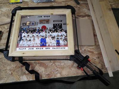 半屋外の寒い作業場での圧着なので、あらかじめボンドは湯煎してから使用しました。