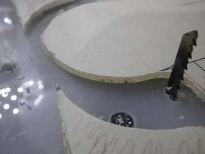 トリマーテーブルにセットしたジグソーユニットでカットしました。