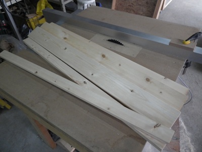 まずは1x4 6ft材2本を半分の長さにしてから、1本を半割りに