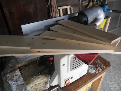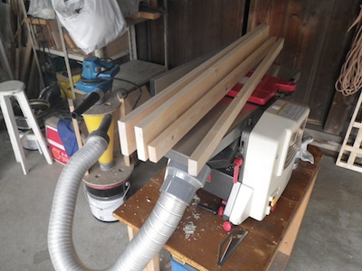 板継ぎした材料と、1x4をカットしたものを自動カンナで15mmに