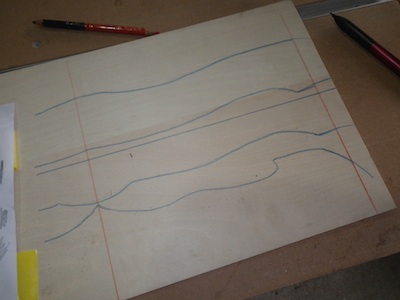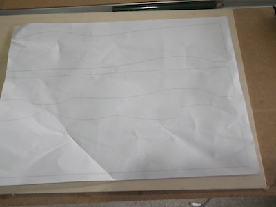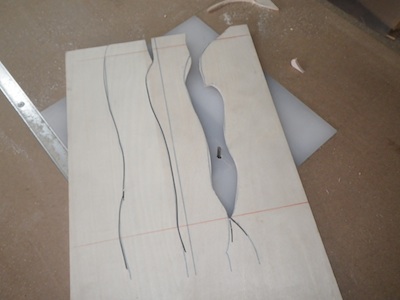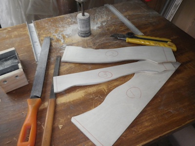 なるべく左右対称にしたいので、テンプレートは片側半分だけ作って、半分ずつ削っていきます。