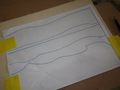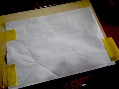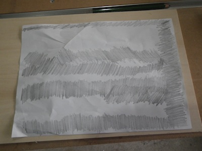 線のあるところの裏側に2Bのエンビツでガサガサします。