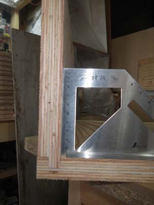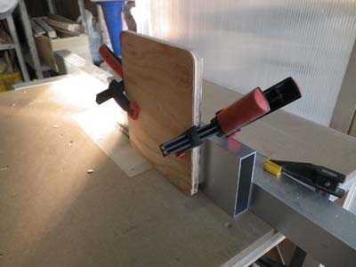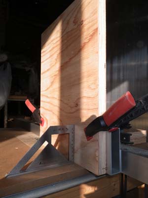 板だけでは直角の保持が危ういので、角パイプに止めて