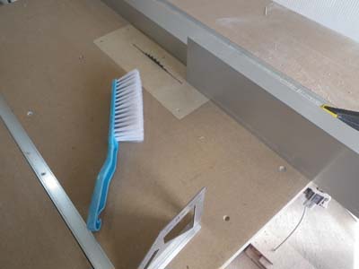 木屑で狂いが出ないように毎回天板を掃除しながらの作業です。