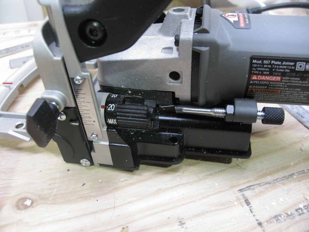 #557の切削深さの調整は写真中央のダイヤルを使います。