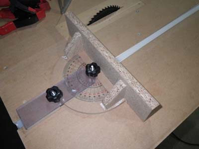 2x材をフェンスに見立てて先日作ったマイターゲージを一緒に置いてみました。