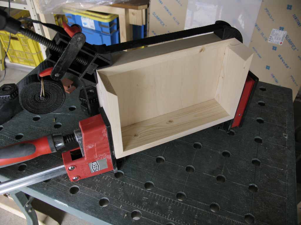 その間に昨日組み立てた抽き出しに留め実加工(名前が違っていたら突っ込みお願いします。)をするための治具を作っていきます。