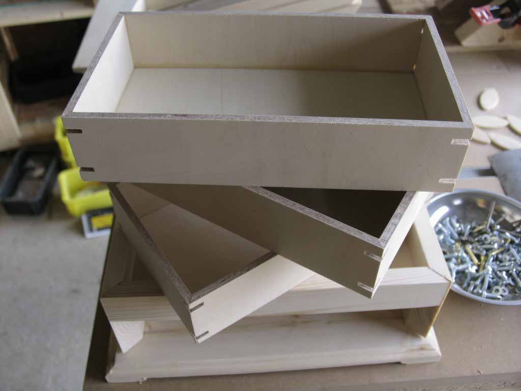 3台分の抽き出しの留め実加工完了。