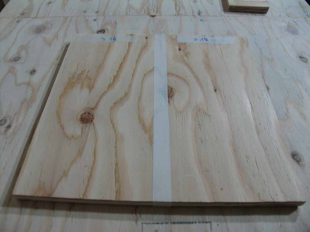 針葉樹合板の端材を2枚新たに用意しました。どちらも気持ち念入りにサンディングしています。