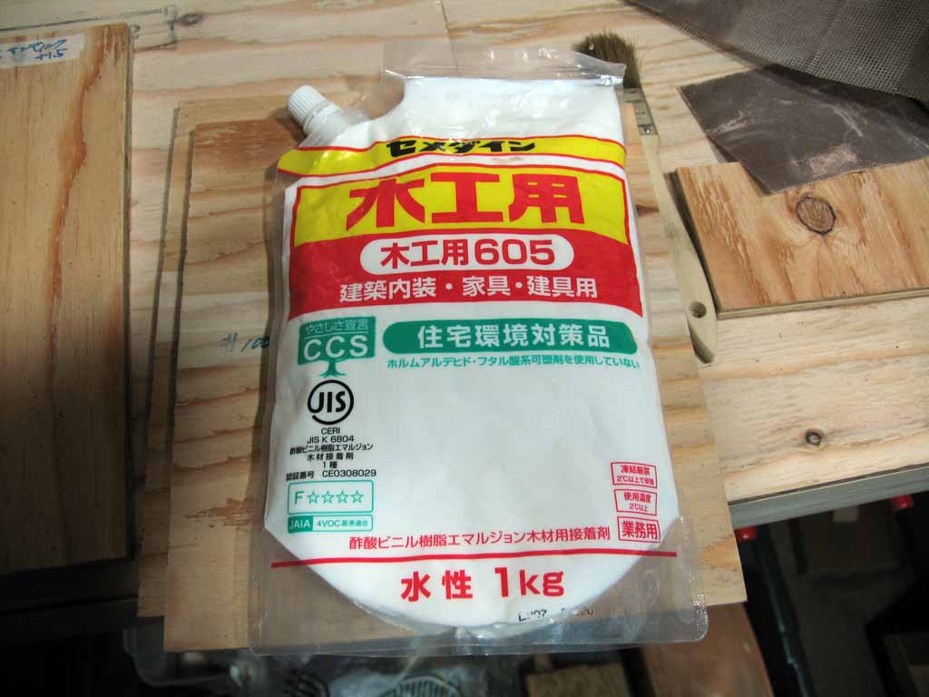帰ってきてからネットで調べてみたら、タイトボンドは1、2、3以外にもたくさんの種類があって、用途別に使い分けられるようになってるんですね。コニシさんもセメダインさんも、耐水性の高い物とかぜひお願いします。