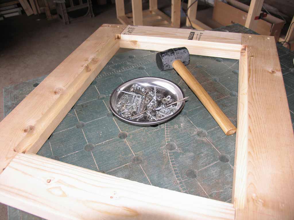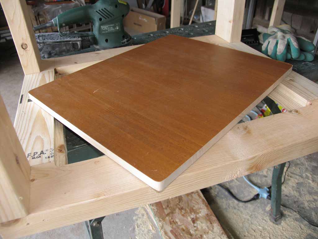 再度組み直して溝に合わせて板をカット。板は昔使っていたテレビ台のリサイクル。