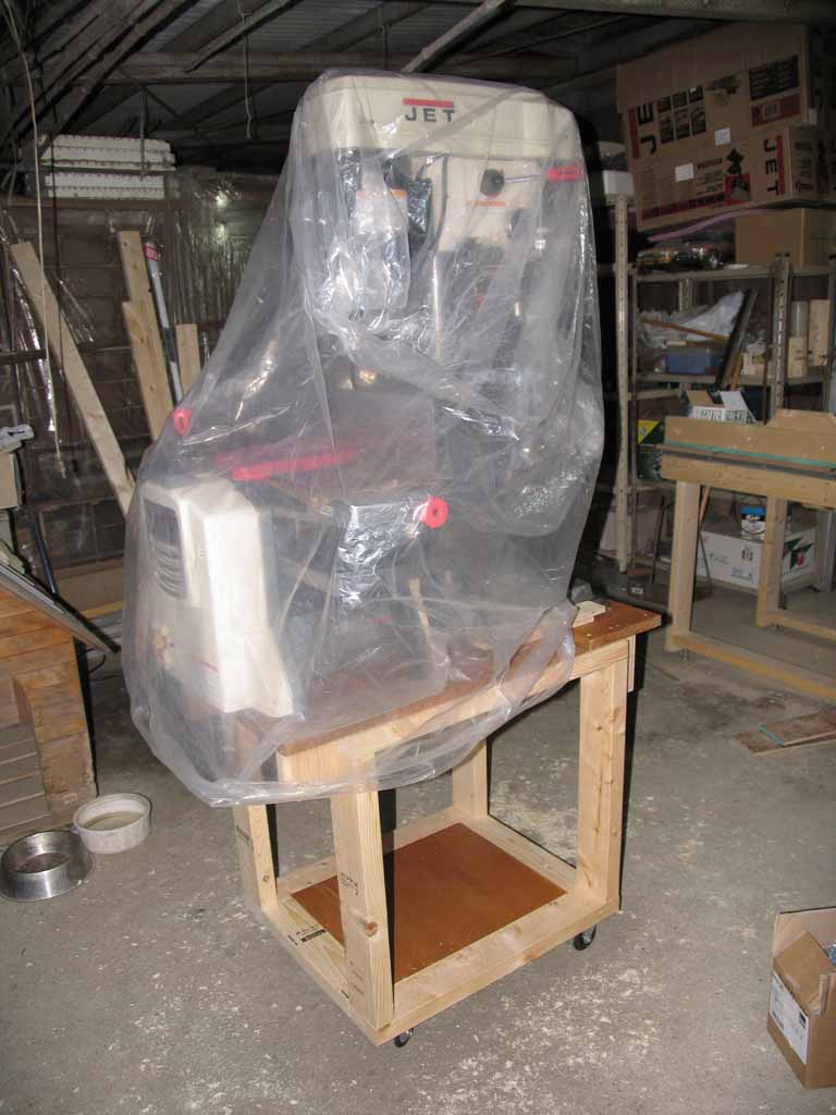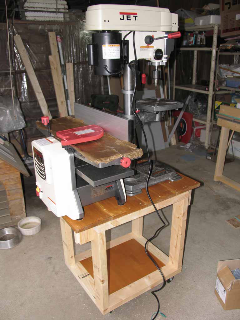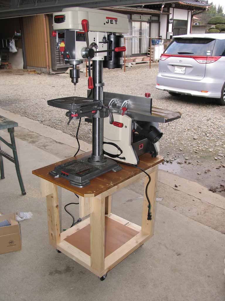 JET 200mm ジョインタープレナー JJP-8BT、JET バリアブルスピード・ボール盤 JDP-12を一緒に背中合わせでのせてしまいました。ドリルプレス側から。