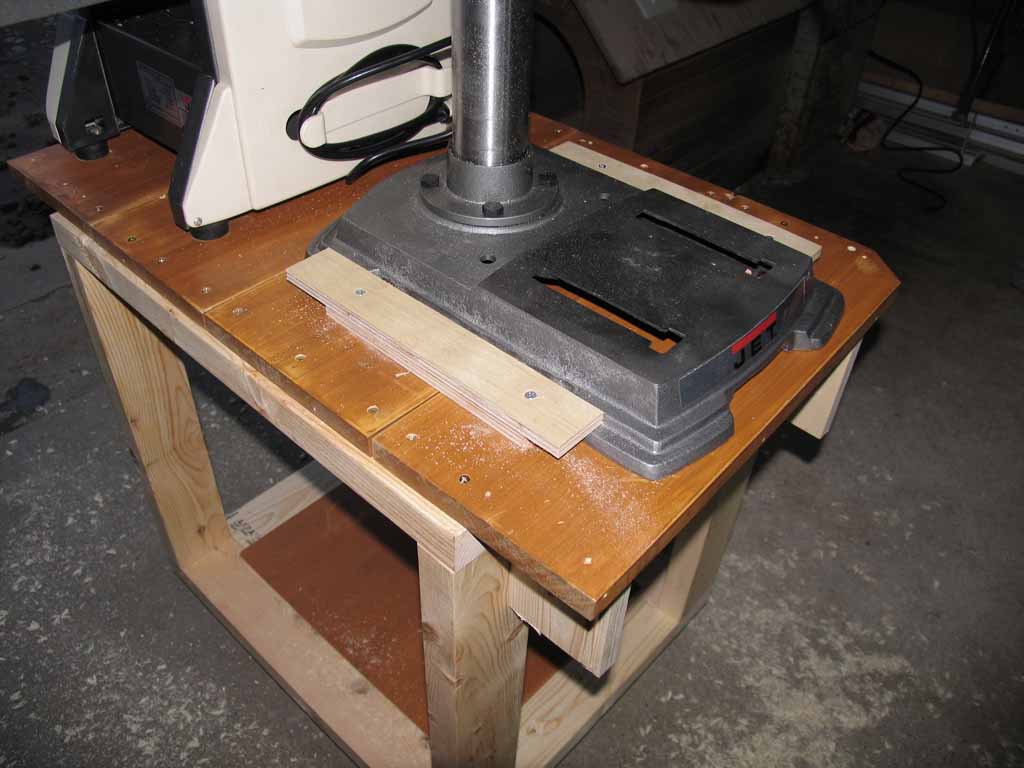 ドリルプレスだけをのせると妙にスペースが余ります。ふと思い立って(我ながらいつも計画性がありませんヾ(;´▽`A``)上板だけ延長して補強をポケットホールで取り付けて.....