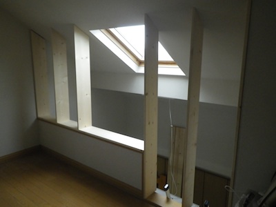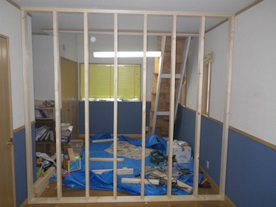 これはしばらく前に作ったまま、放置状態になっていた間仕切り壁の下地。