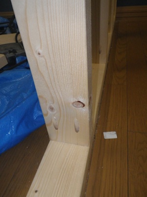 背板はなんちゃって実加工したものを、釘&ボンドで固定しています。