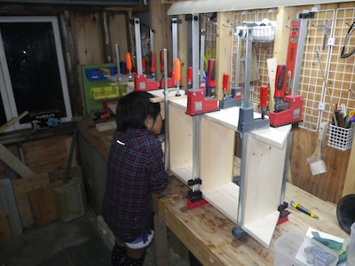 まずは日曜日に組み立てた棚の残り半分を組み立てます。