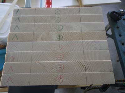 4枚ずつ色が違うのは左右の板を区別する為です。