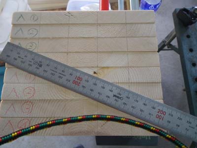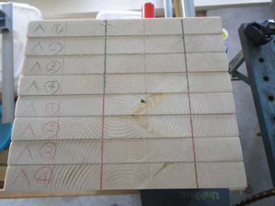 右端と、1本飛ばして右から3本目に色鉛筆でマーキング。