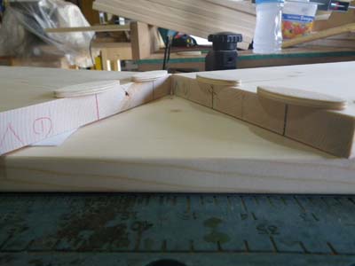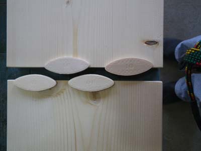 中央のツイタテ部分は同じ位置にビスケット加工をすると、板厚19mmに対してビスケットが約12mm × 2枚と5mm程度重なってしまう為、それぞれオフセットさせて加工します。